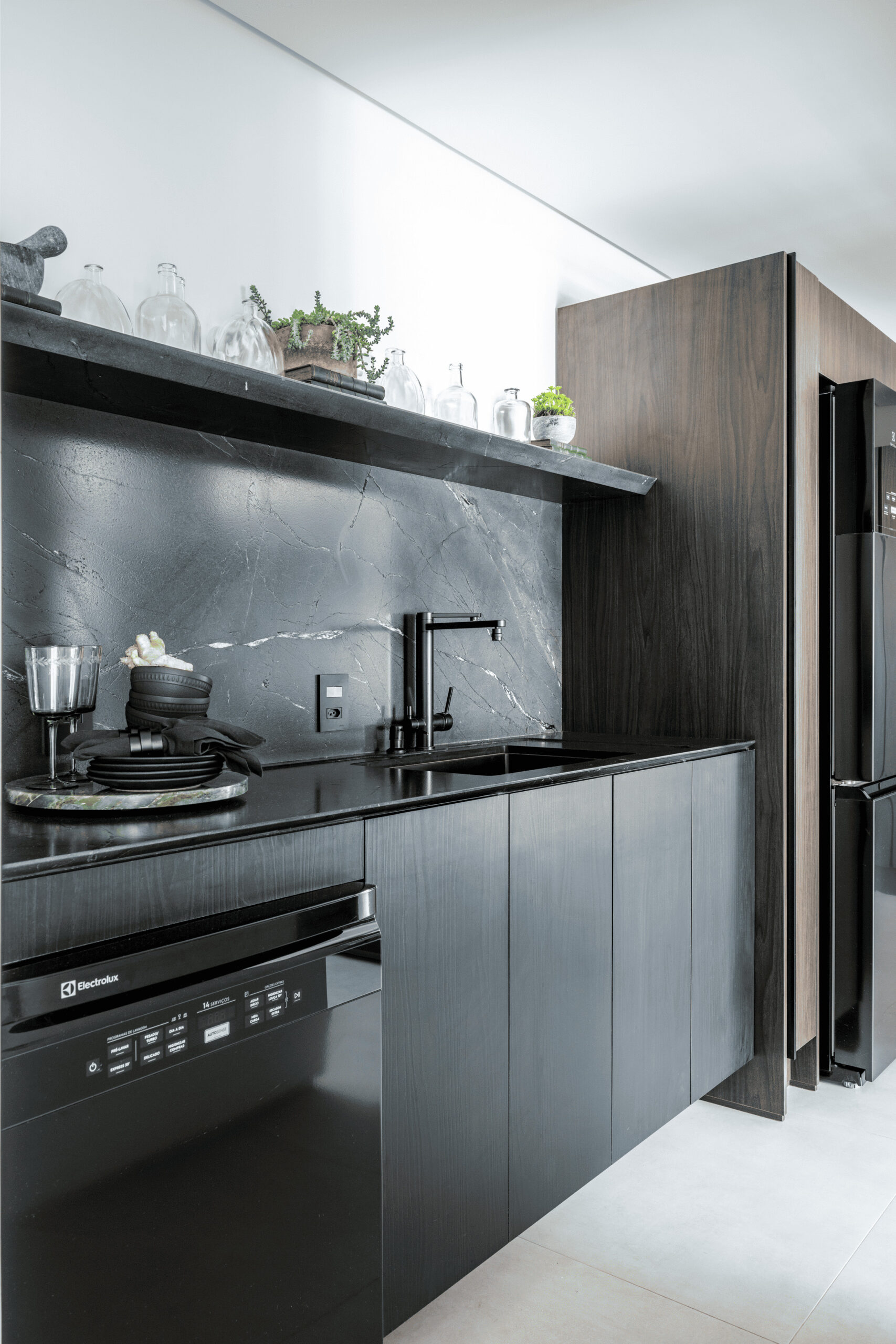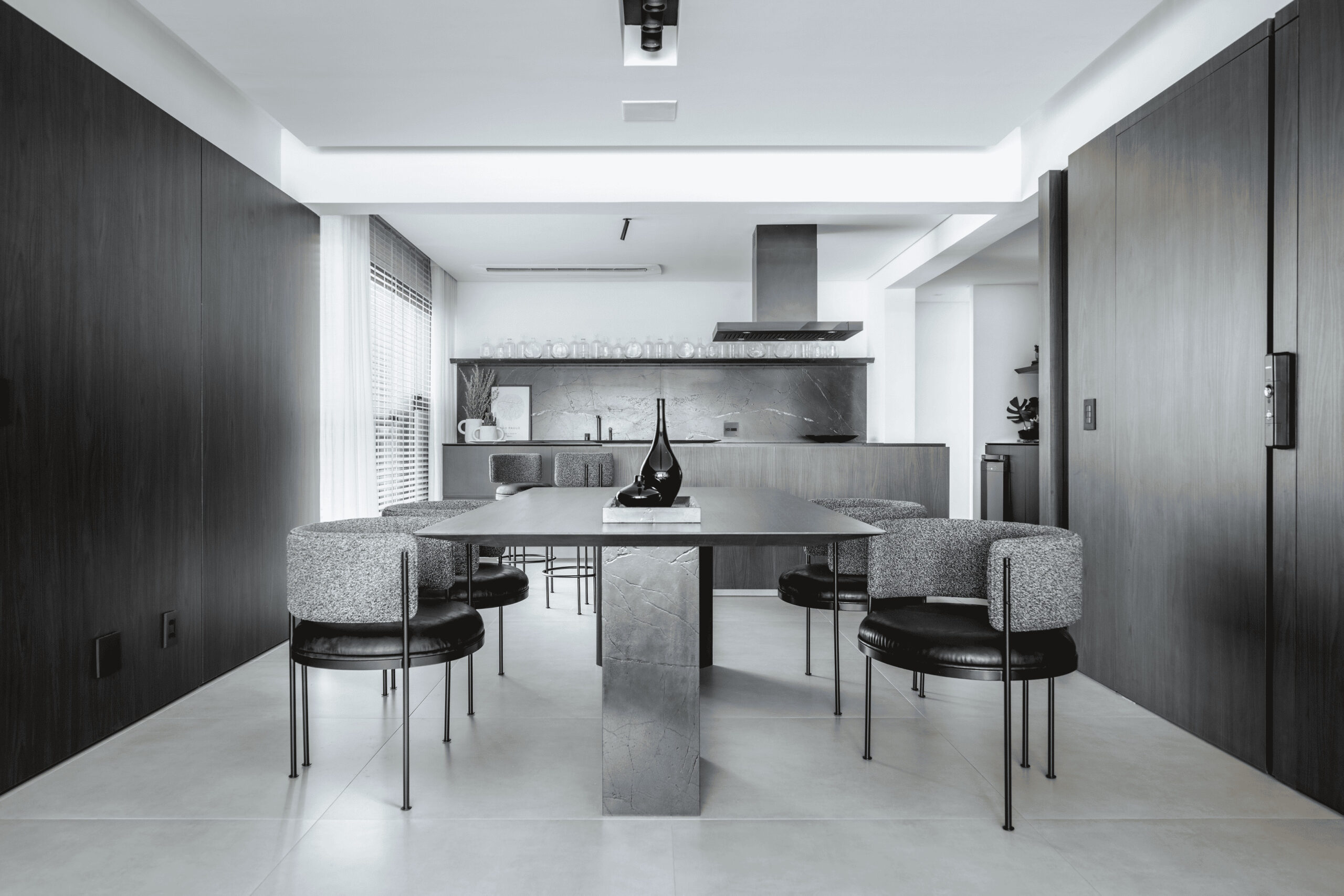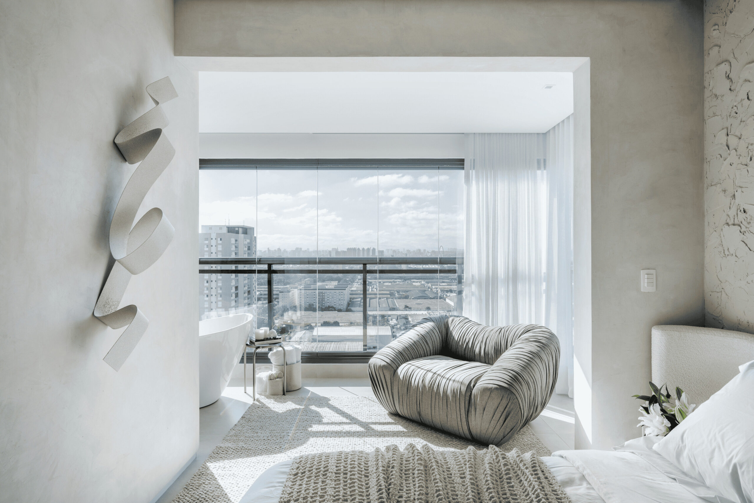 Viver a casa. Com 160 m² cada espaço deste apartamento foi projetado com intuito de experimentação. Um layout funcional, onde tudo flui com facilidade. Cores e texturas que marcam os volumes e evidenciam a estrutura do edifício. Arte e arquitetura com um só propósito.